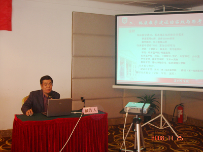 副院长李朝品作了关于《巩固评建成果  深化教学改革加强质量监控  努力提高我校临床教学质量》的工作报告。在简单介绍了学校基本情况以后,接着,对过去的两年以迎接国家教育部对我校本科教学水平评估为契机,本着“以评促建、以评促改、以评促管、评建结合、重在建设”的临床教学工作进行了总结。