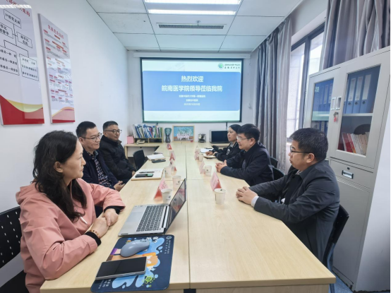 沈安鲁对邓超一行表示诚挚欢迎。他介绍了安徽中医药大学第一附属医院的发展历程与综合实力,重点介绍了口腔科近年来的发展优势——自建立以来历经多年积淀,已形成融合传统中医与现代口腔医学的特色发展模式,配备先进医疗设备与专业带教团队,具备完善的实践教学保障条件。郝静华补充介绍了科室临床带教体系,表示将为实习生提供涵盖多类口腔疾病诊疗的一线实践机会,助力实习生理论与实践的深度融合。
