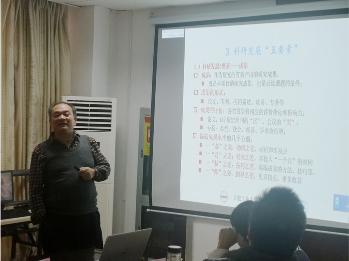 在“高校教师教育科研发展之思考”报告中,胡学钢教授介绍了高校教师的职责,以及高校职能与教师职能的关系,阐述了高校教师做科研的必要性,指出高校教师是高校职能的承担者,要以教书育人为天职,以科研发展为己任,并从科研发展“五要素”(团队组建、课题申报、研究成果、资源利用和团队文化)介绍了高校教师如何做好科研,同时重点分享了国家自然科学基金项目申报经验。