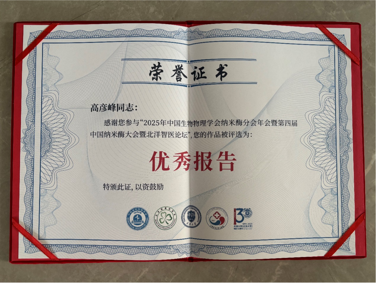 4月18日至21日,第四届中国纳米酶大会在天津召开,十余位院士作精彩大会报告,内容涵盖纳米酶的设计、合成、机理研究及应用拓展等多个前沿方向。我校高彦峰作了题为《基于纳米酶级联催化的微流控平台用于生物标志物的检测》的报告,系统介绍了其团队在利用纳米酶实现高灵敏检测方面的最新研究进展。该研究成果因创新性强、应用前景广阔,获得大会优秀报告奖。