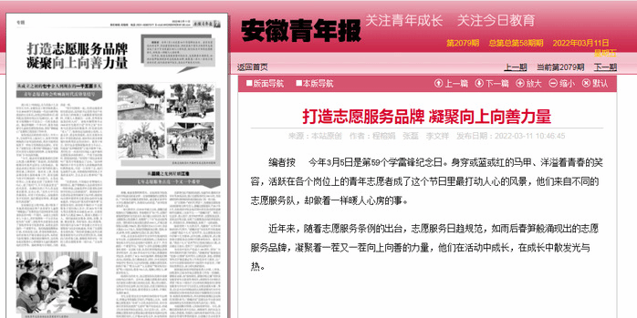 【安徽青年报】打造志愿服务品牌 凝聚向上向善力量